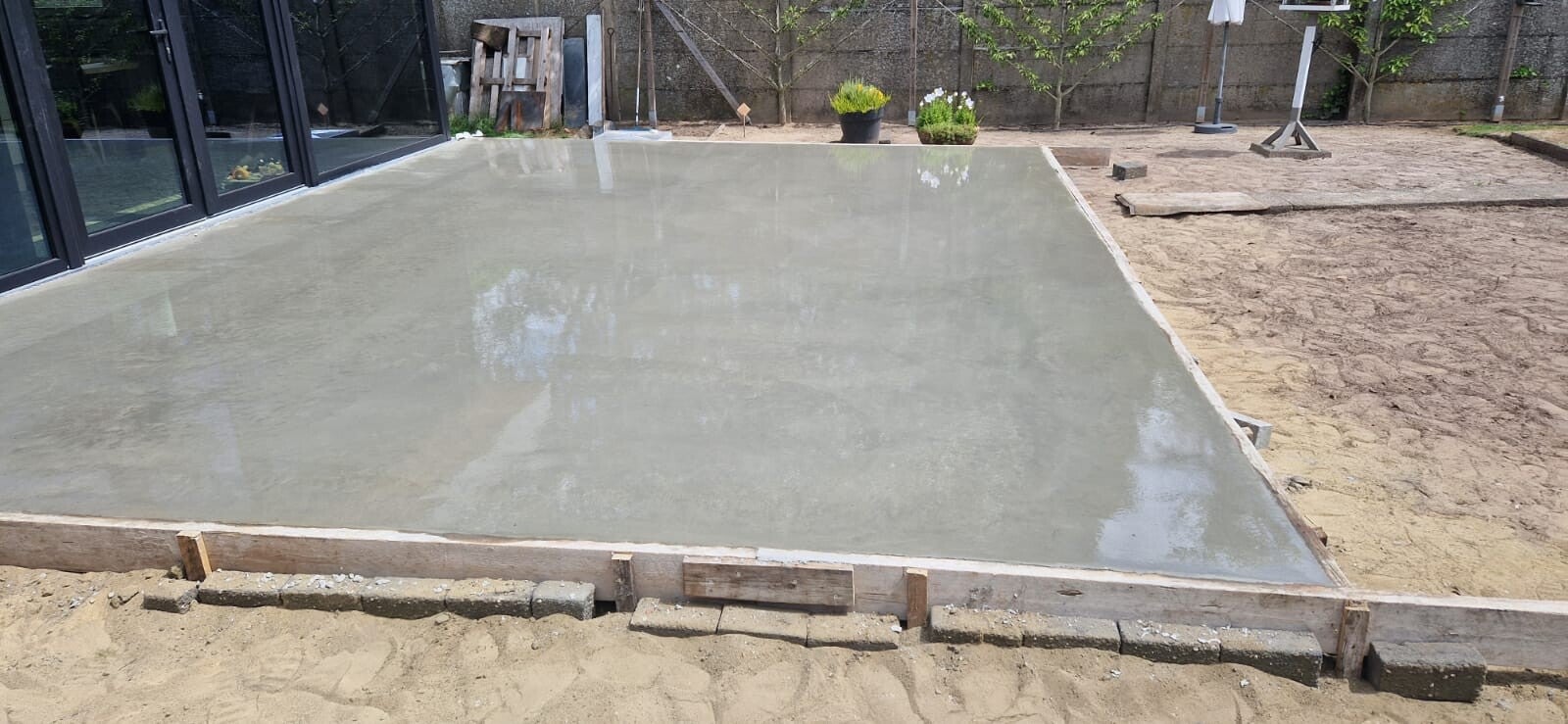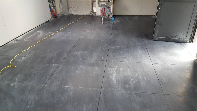 Een kleine impressie van een gepolierde vloer die gezaagd werd in grote tegels. deze werd bewerkt met een sealer